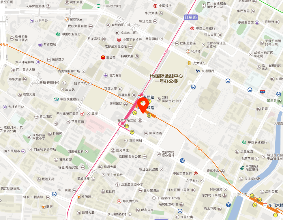 附近的地铁站: 距离地铁2号线、3号线春熙路站35米 附近的公交站: 距离地铁春熙路站 - 公交站145米, 途经公交车: 1022路 距离地铁春熙路站(E2口) - 公交站148米, 途经公交车: 21路 76路 141路 237路 距离南纱帽街 - 公交站180米, 途经公交车: 18路 距离南纱帽街 - 公交站180米, 途经公交车: 18路 距离南纱帽街 - 公交站180米, 途经公交车: 18路 距离春熙路 - 公交站239米, 途经公交车: 车展公交专线 城市新中轴观光线 三星堆旅游直通车1号线 双流机场-春熙路夜间专线 天府国际机场公交专线1号线 熊猫基地-春熙路直通车 距离太古里 - 公交站290米, 途经公交车: 18路 距离义学巷口 - 公交站342米, 途经公交车: 21路 47路 48路 51路 56路 76路 104路 141路 237路 1022路 夜间10路 夜间6路 距离春熙路步行街南 - 公交站355米, 途经公交车: 47路 48路 51路 55路 56路 104路 夜间10路 夜间6路 夜间9路